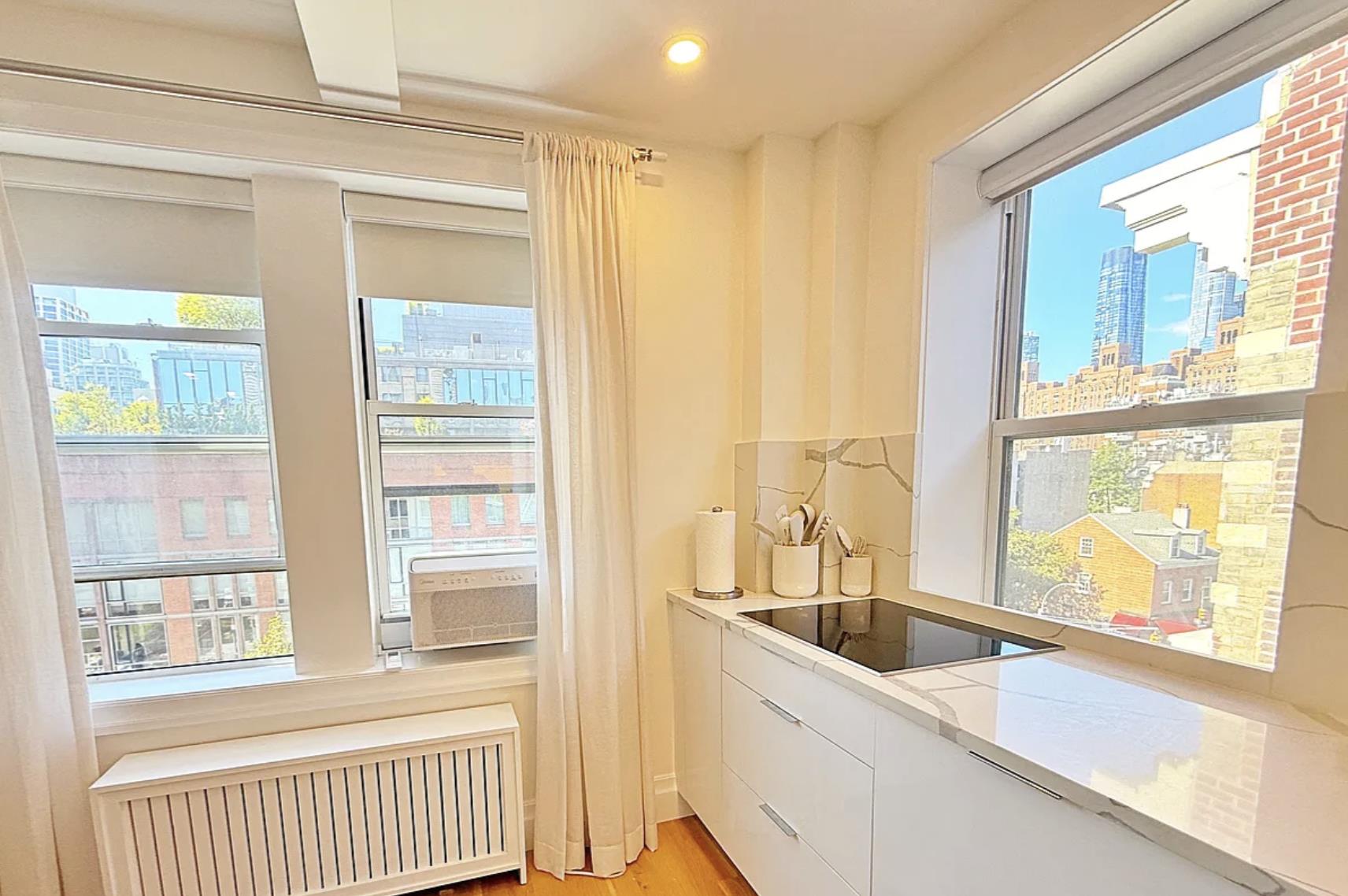 Entry Foyer, Windowed Kitchen, Dishwasher, Open Kitchen, Windowed Bathroom, River View, Northern Exposure, West Exposure, Corner Apartment.